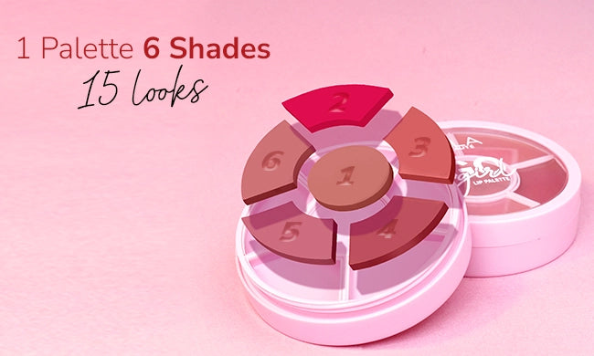 Girl, meet your 6-in-1 lip palette! With creamy texture, matte finish, and high coverage, this versatile palette offers 15+ shade options if you mix and match. Infused with Pomegranate Extracts and Hyaluronic Acid, it's comfy to wear and perfect for lips, cheeks, and lids. Toss it in your bag and you're good to go!