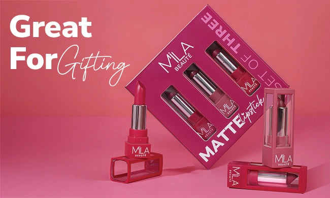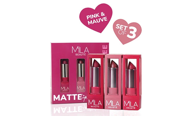 Meet soft, bold and build to last: Mila Beauté matte lipsticks. This adorable set features three ultimate shades of browns that melts like butter, giving you a vibrant, full-coverage colour without the dry feel. Its lightweight formula hugs your lips with soft hydration and bold pigment. So why stop at one? Own three statement shades for one perfect pout and unlimited looks.
