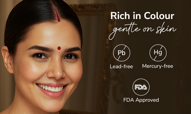 Experience the sacred touch of Pure Divine Sindoor, where tradition meets purity. With its intensely pigmented and quick-drying formula, it delivers a flawless finish in seconds. Crafted using FDA-approved colours, it’s lead-free, mercury-free, and safe for everyday use. This non-irritant Sindoor is gentle on your skin, making it perfect for all-day wear. Its smudge-proof, water-resistant, and long-lasting properties ensure your divine elegance stays intact from morning to night. Whether for daily rituals or special occasions, embrace beauty that’s both spiritual and safe. Let every streak speak of strength, love, and grace.