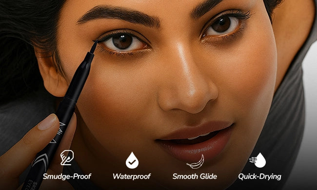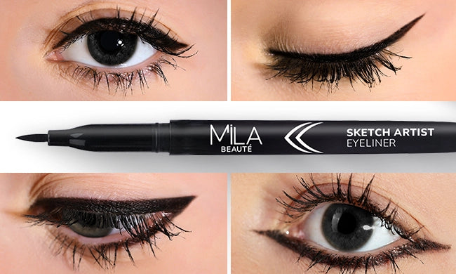 Draw your wings like a pro with zero stress. Mila Beauté Sketch Artist Eyeliner glides on smooth with a high-pigment formula that gives rich color in just one swipe. The precise felt-tip moves effortlessly. It is water-resistant, smudge-proof, and dries quickly so you never have to worry about smearing. Infused with Jojoba Oil, it keeps your lids feeling soft and comfortable all day. Whether you're going for subtle flicks or bold wings, this eyeliner brings your eye game to the next level.