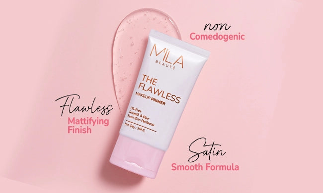 The Mila Beauté Flawless Makeup Primer is your gateway to a flawless, matte skin base. The satin-smooth formula mattifies and creates a smooth, flawless complexion. It minimizes shine, prevents oil from disturbing your makeup, and makes your foundation last longer. With a no-block, no-clog formula, this skin-perfecter efficiently evens out your skin and blurs pores without clogging them. A little goes a long way in keeping your complexion matte and beautiful all day.
