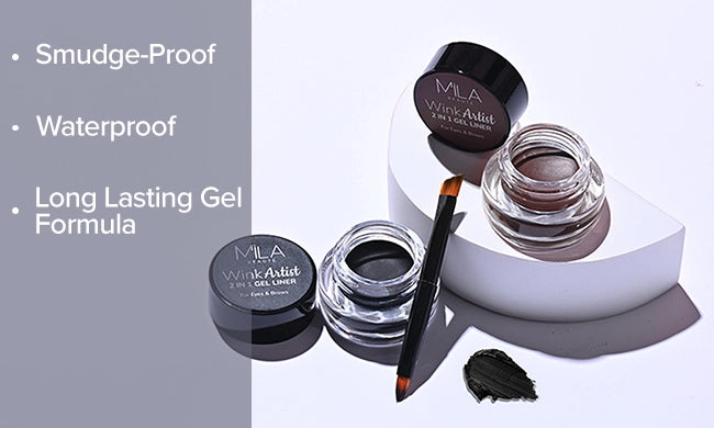 Achieve stunning eye looks with Mila Beauté Wink Artist Gel Eyeliner. This waterproof eyeliner boasts a long-lasting gel formula that delivers dramatic results in just a single stroke. It glides on smoothly and precisely, drying down quickly to ensure a long-wearing, waterproof finish that stands up to anything your day throws at you.